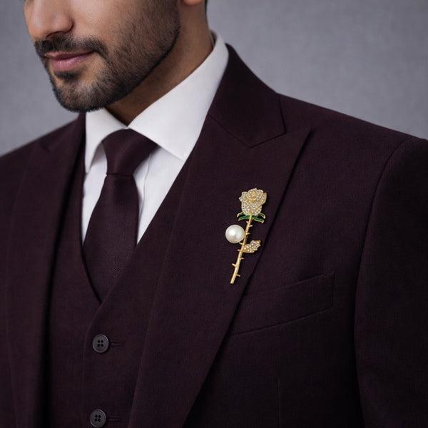 Rose Lapel Pin: Features a finely detailed rose design symbolising elegance and sophistication—perfect for refined formal styling.