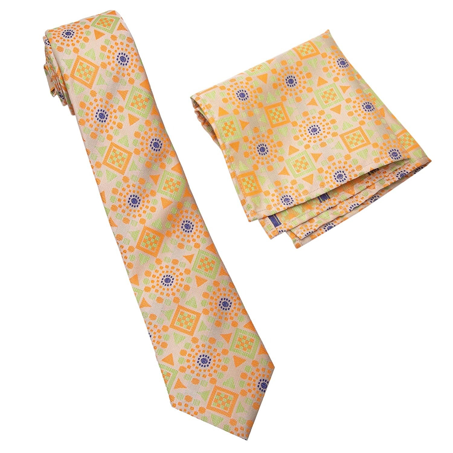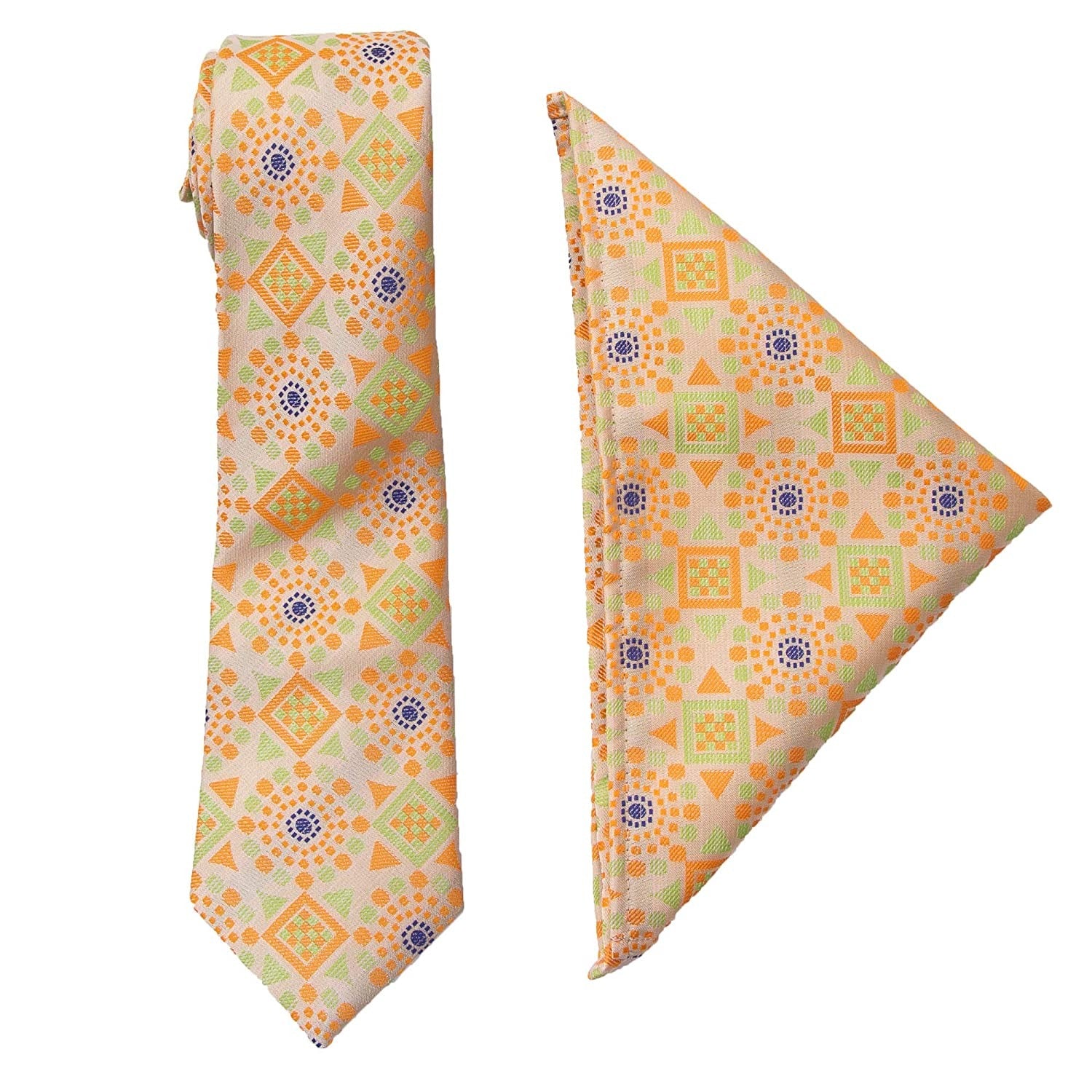 Introducing Elegant Orange Geometry Tie Pocket Square Sets, crafted with finest microfiber material.