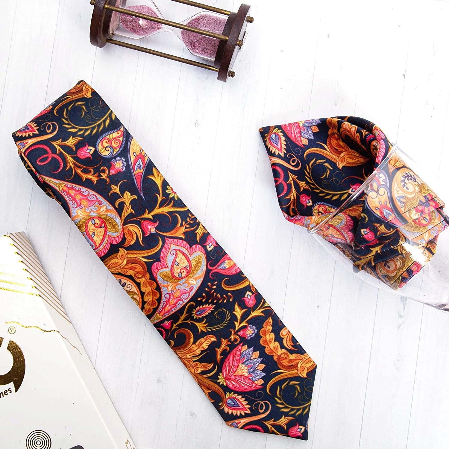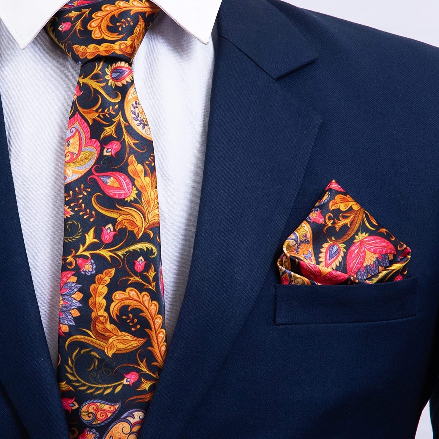 Introducing Elegant Navy Blue Floral Tie Pocket Square Sets, crafted with finest Microsatin material.
