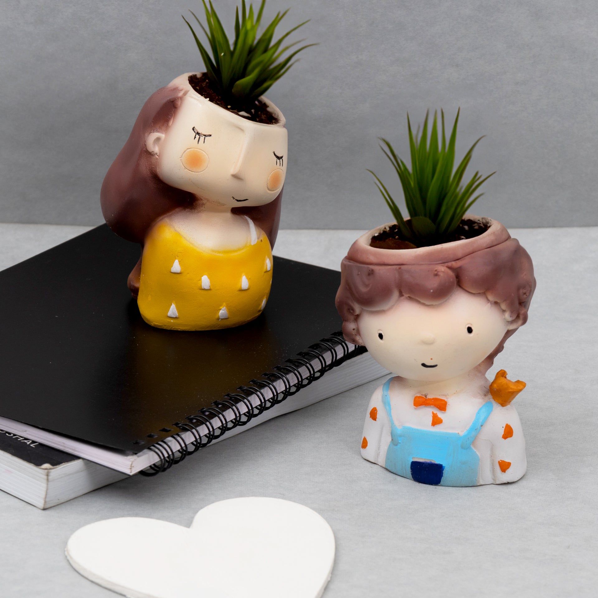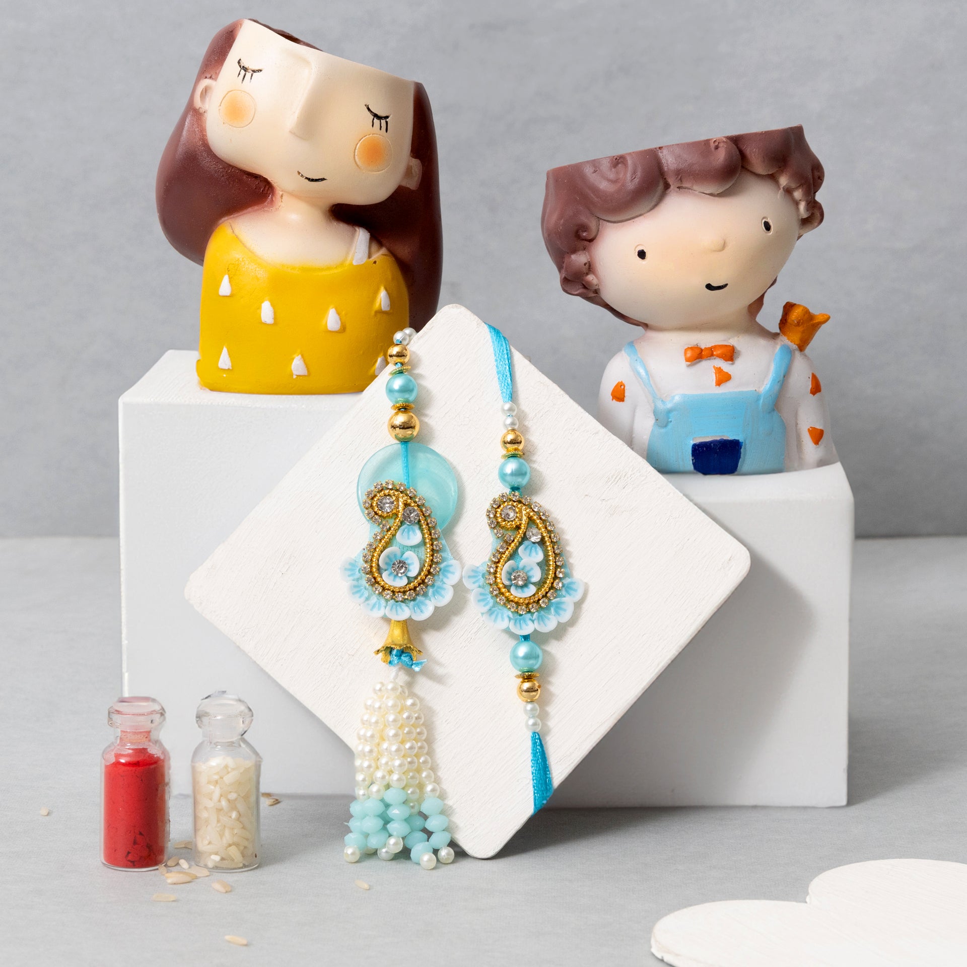 Couple Planter with Bhaiya Bhabhi Rakhi Gift Set