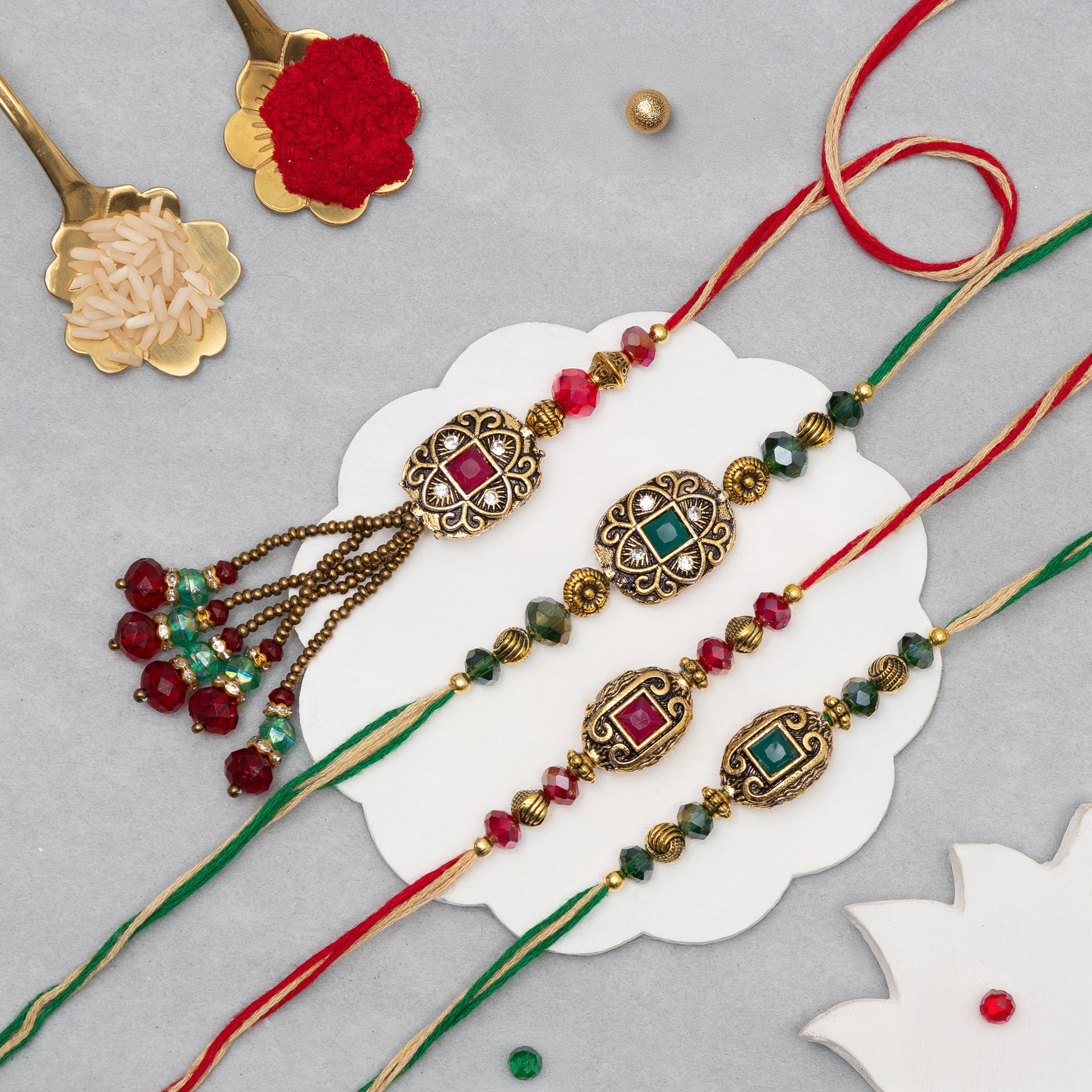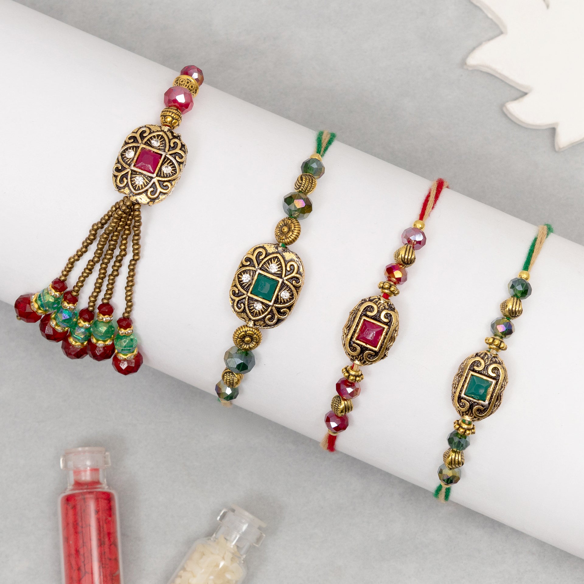 Bhaiya Bhabhi Antique Rakhi with 2 Kids Rakhis