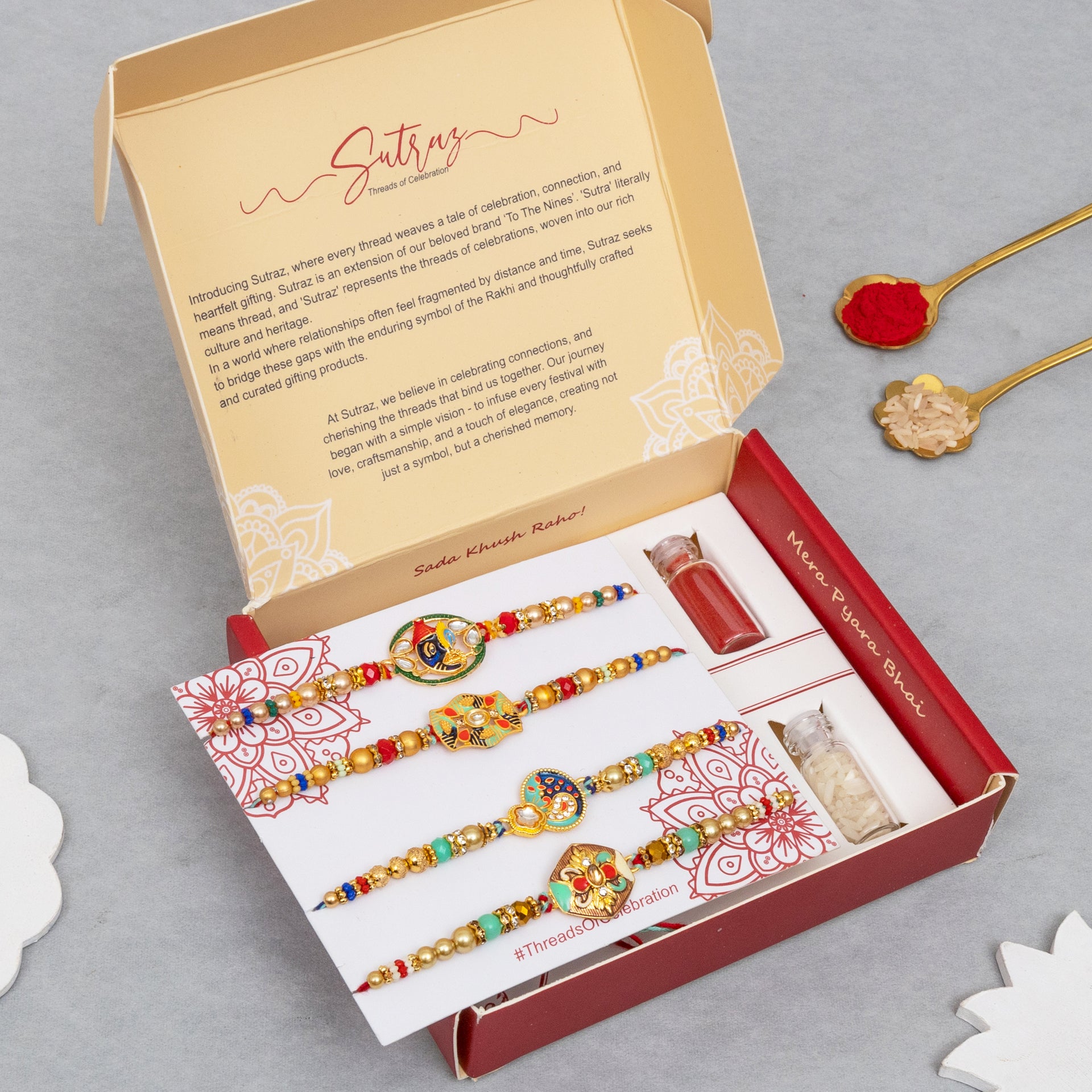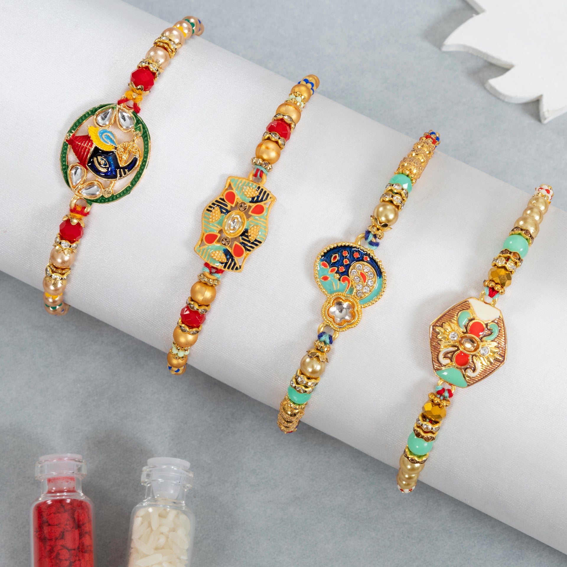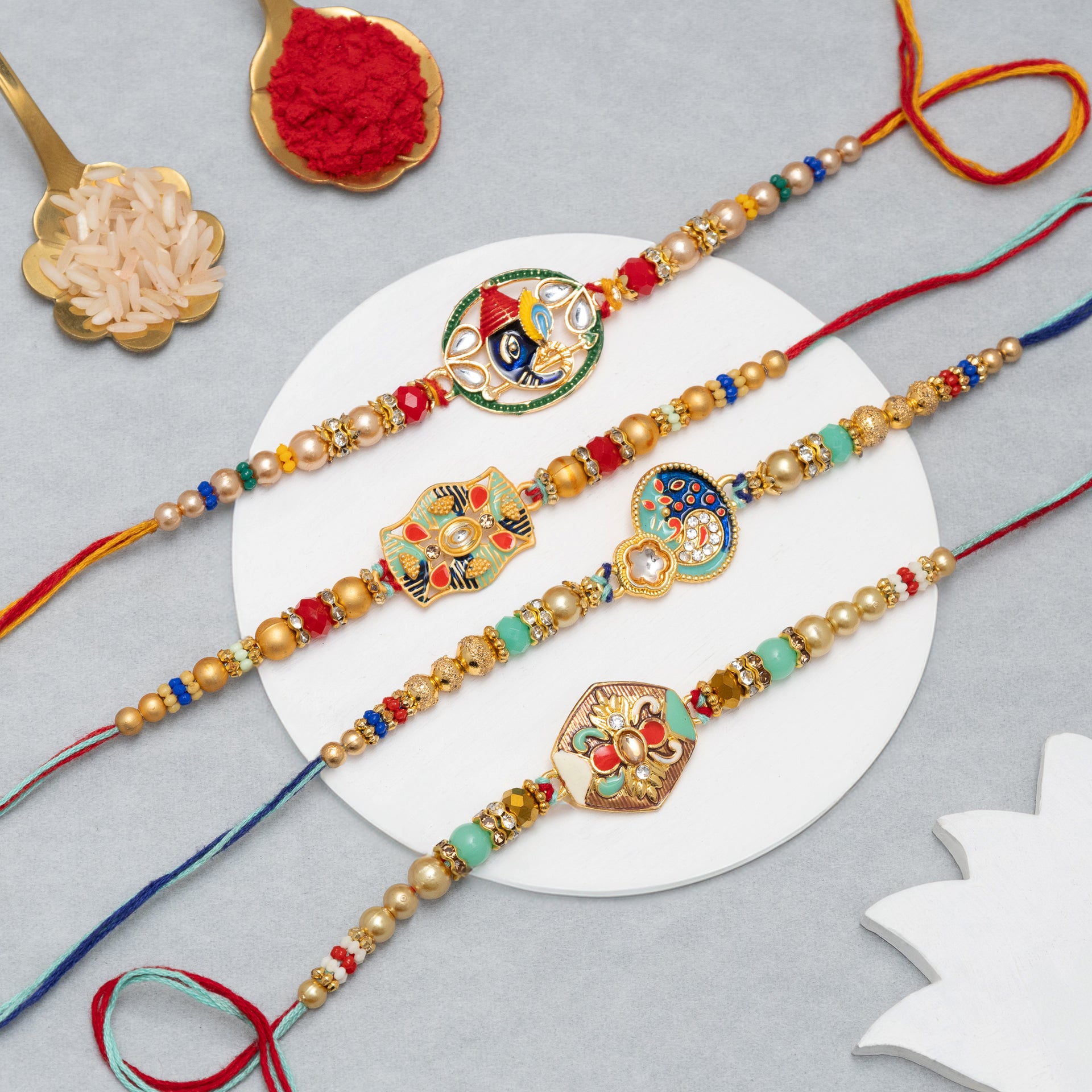 Set of 4 Meenakari Kundan Rakhi for Brother