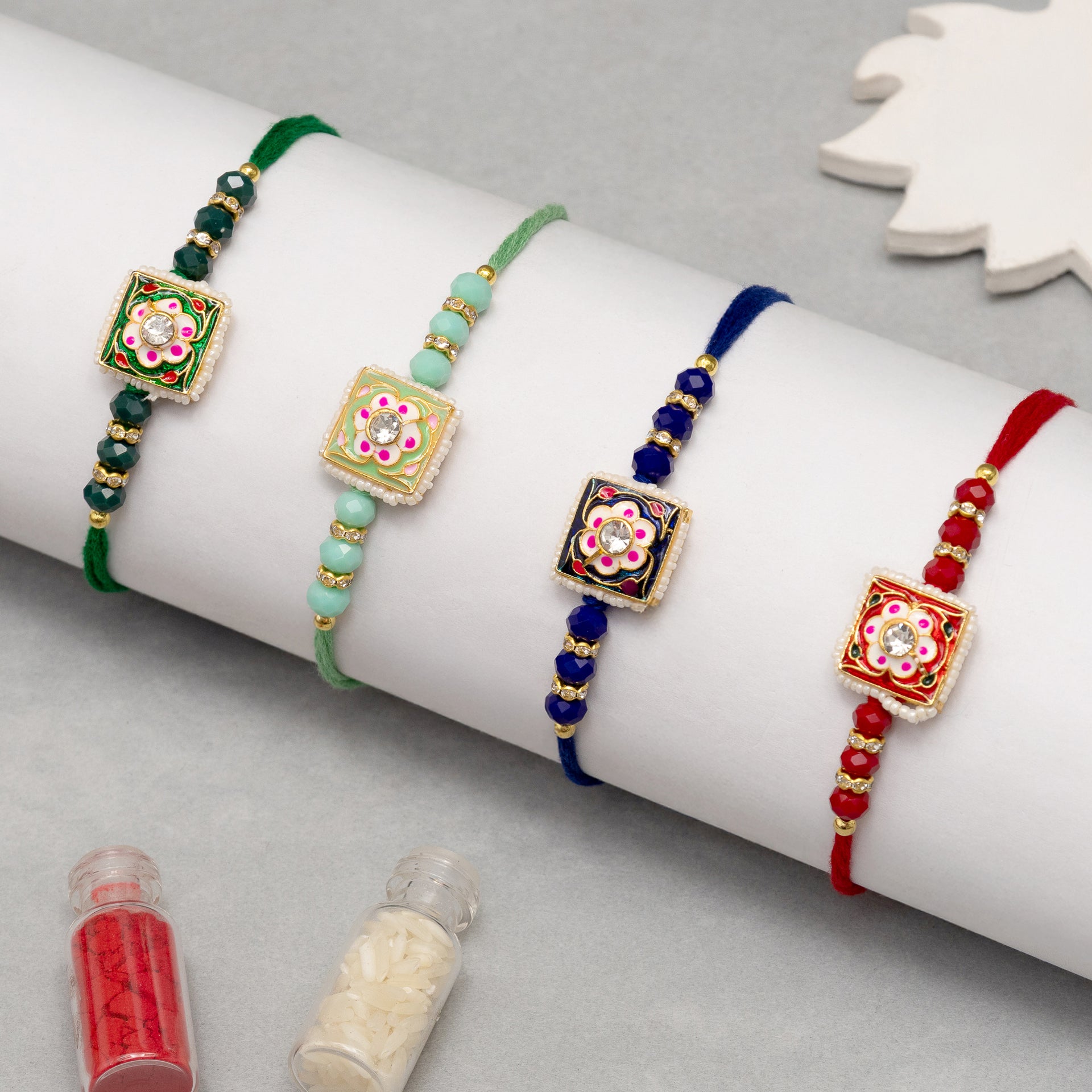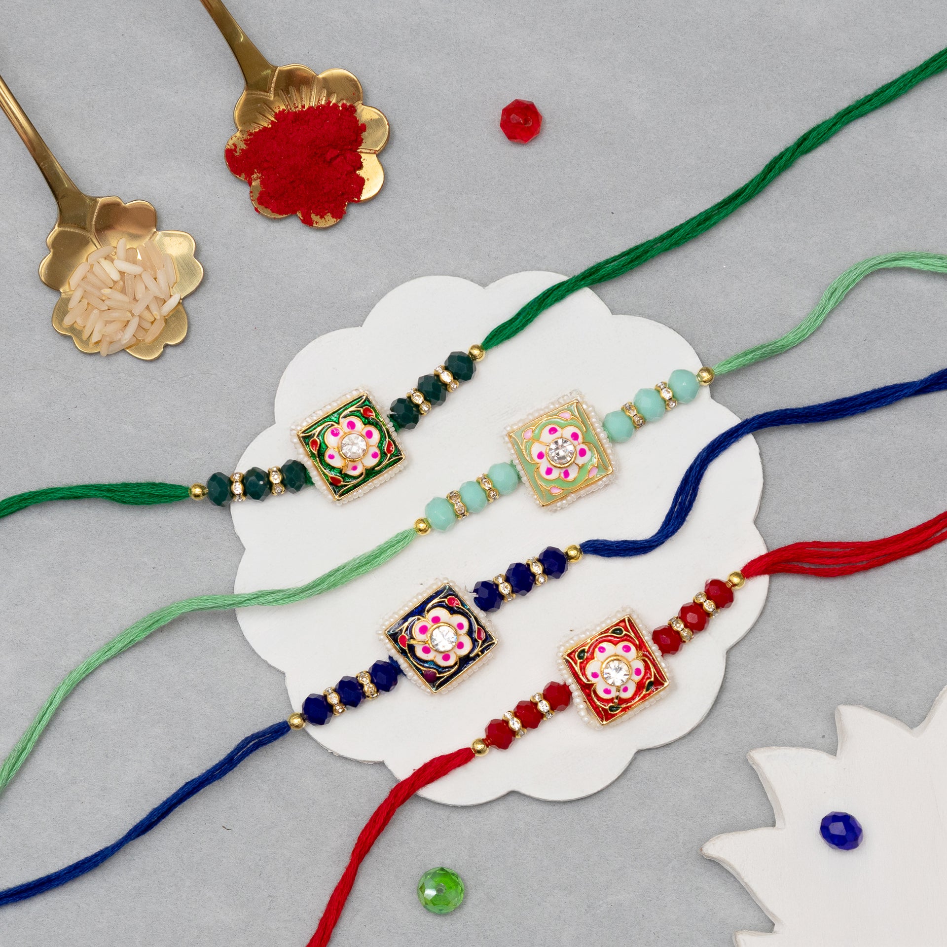 Traditional Kundan Rakhi Set – Pack of 4 Rakhis for Brothers