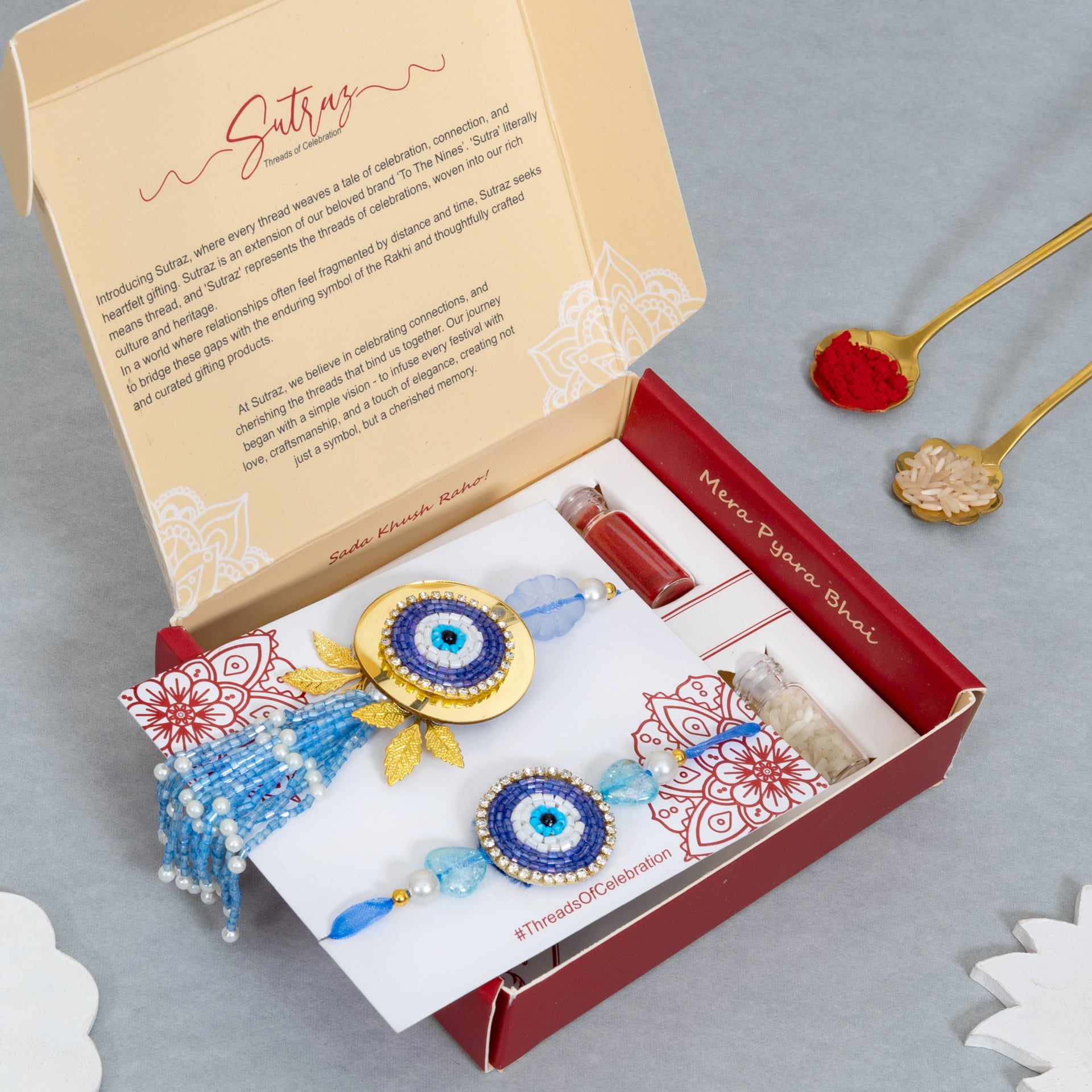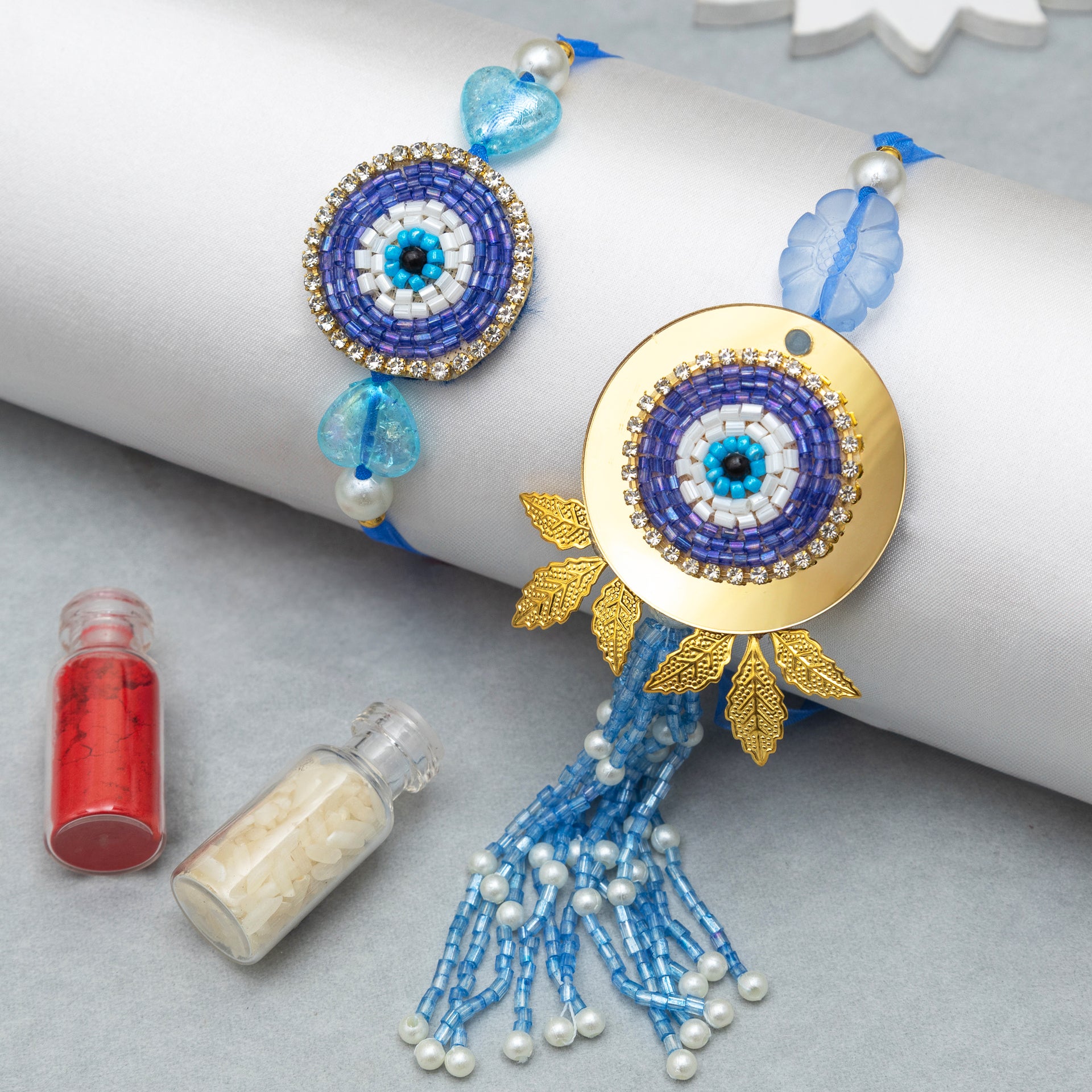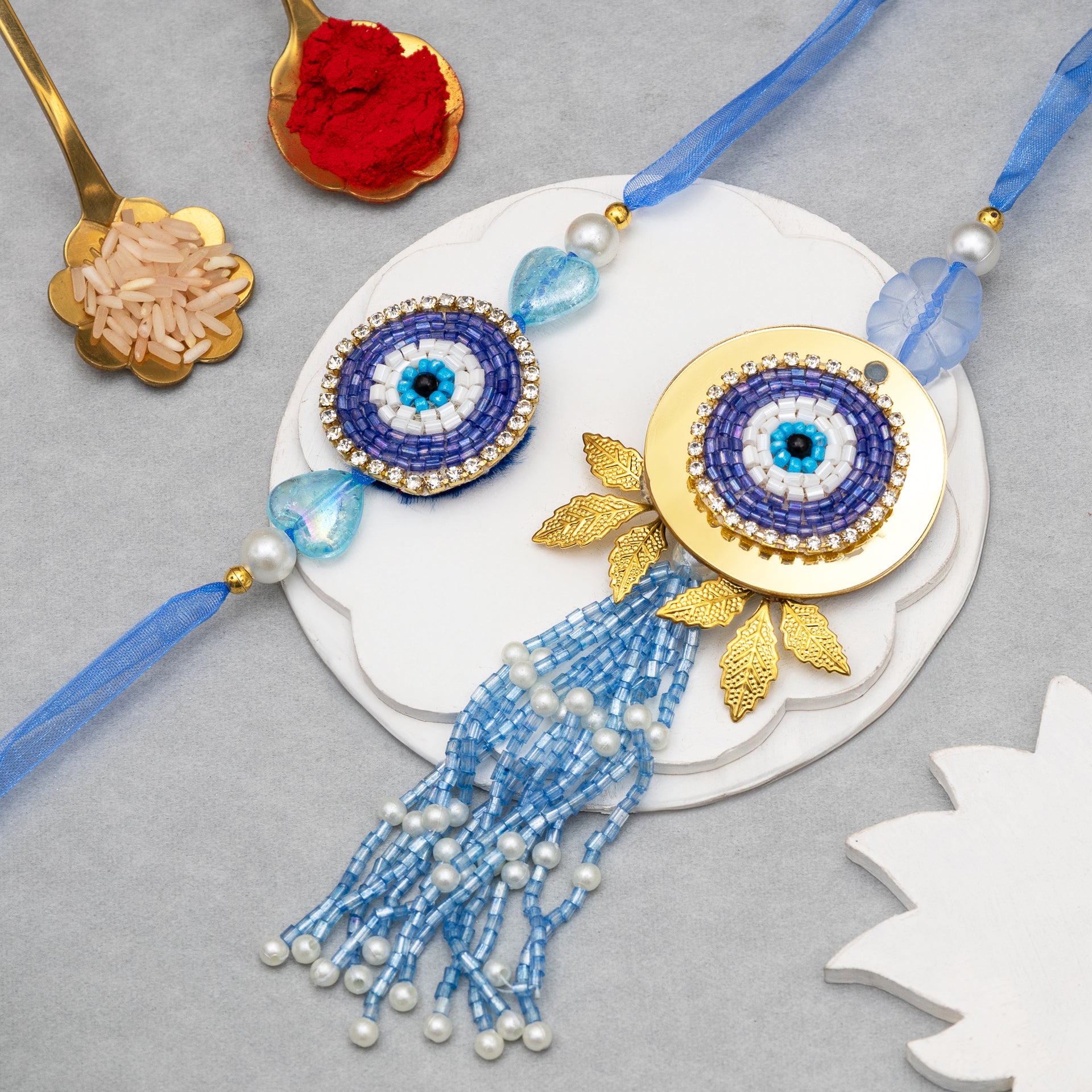 Evil Eye Embroidered Bhaiya Bhabhi Rakhi Set