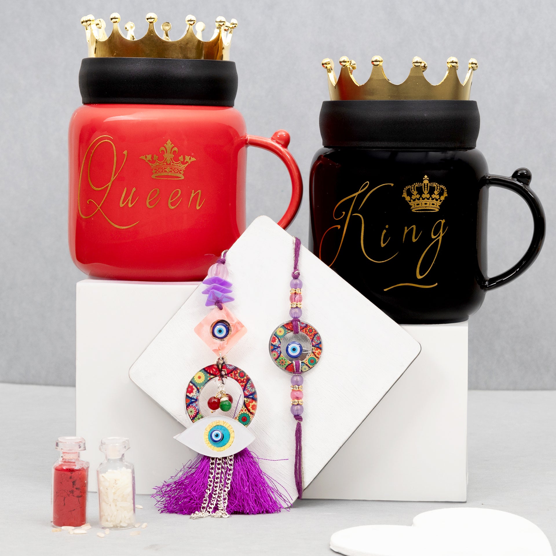 Contents: The package consists of Bhaiya Bhabhi Rakhi Set, 2 Mugs, Tilak Material & a Rakshabandhan Greeting Card. Gifting: Surprise your brother with this beautiful Rakhi Gift Set on Raksha Bandhan and make this special day even more memorable. Unique Look: Make your brother feel special with our exclusive collection of unique Rakhis that have been handcrafted with love and care. Design: Experience the joy of celebration with our exclusive collection of rakhi gifts, each one a blossoming symbol of love and affection. Thoughtful Packaging: Each Rakhi is packed in a beautifully crafted box as shown in the images. |