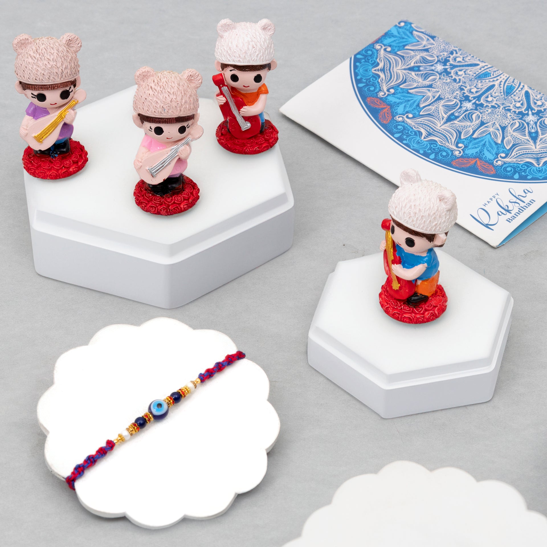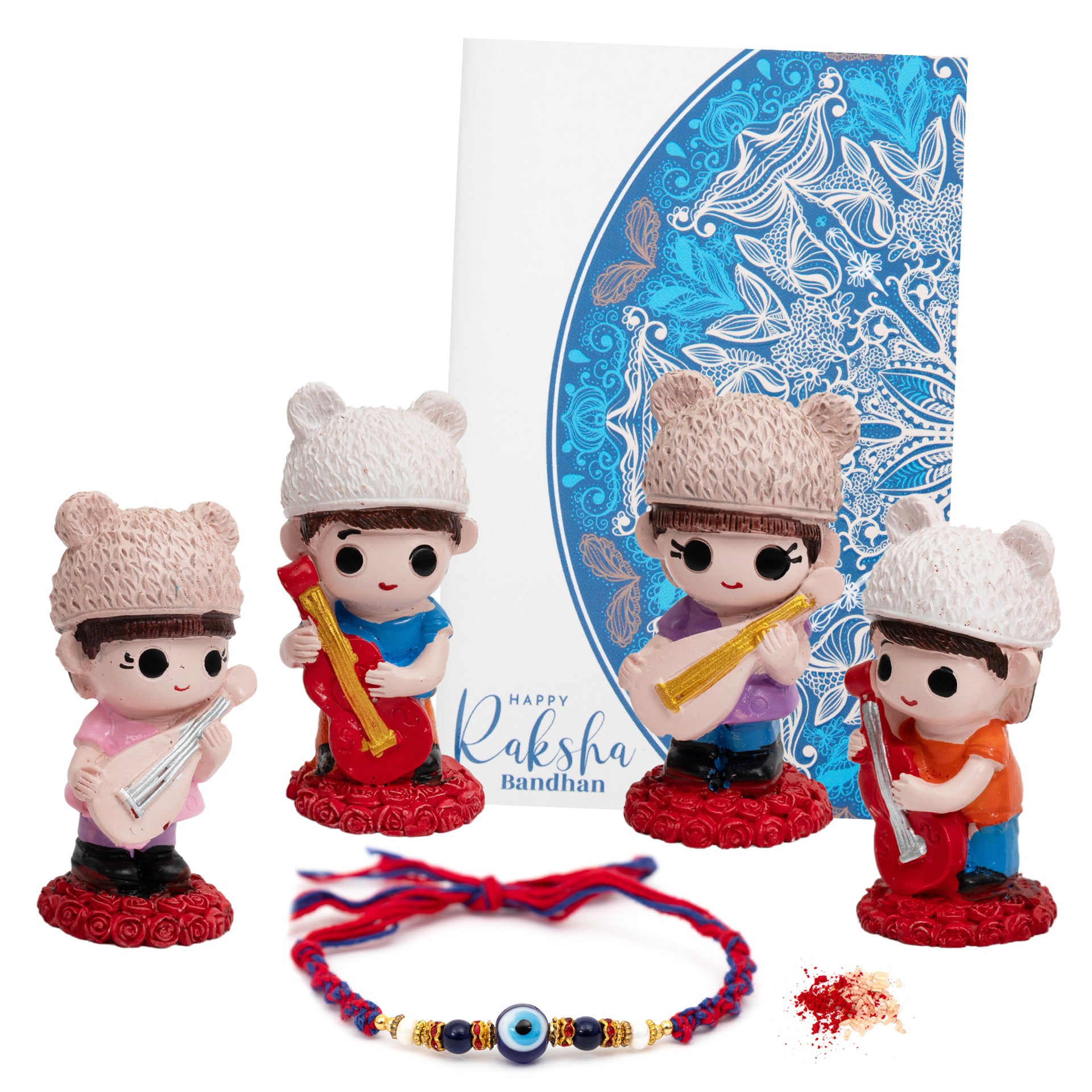 Contents: The package consists of Evil Eye Rakhi for brother With Cute Kids Set, Tilak Material & Greeting Card. Gifting: Surprise your brother with this beautiful Rakhi Gift Set on Raksha Bandhan and make this special day even more memorable. Design: Each Rakhi is made from high quality Alloy, Mauli & supporting Articles and Panda Mug is composed of Ceramic. Design: Experience the joy of celebration with our exclusive collection of rakhi gifts, each one a blossoming symbol of love and affection. Thoughtful Packaging: Each Rakhi is packed in a beautifully crafted box as shown in the images. |