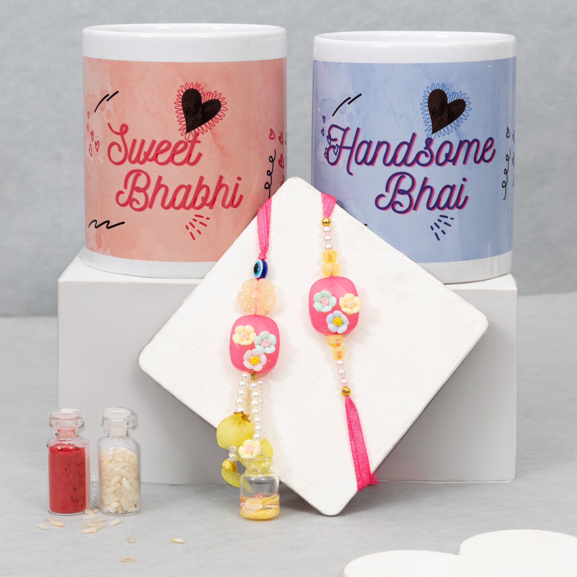 Contents: The package consists of Bhaiya Bhabhi Rakhi Set, 2 Mugs, Tilak Material & a Rakshabandhan Greeting Card. Gifting: Surprise your brother with this beautiful Rakhi Gift Set on Raksha Bandhan and make this special day even more memorable. Unique Look: Make your brother feel special with our exclusive collection of unique Rakhis that have been handcrafted with love and care. Design: Experience the joy of celebration with our exclusive collection of rakhi gifts, each one a blossoming symbol of love and affection. Thoughtful Packaging: Each Rakhi is packed in a beautifully crafted box as shown in the images. |