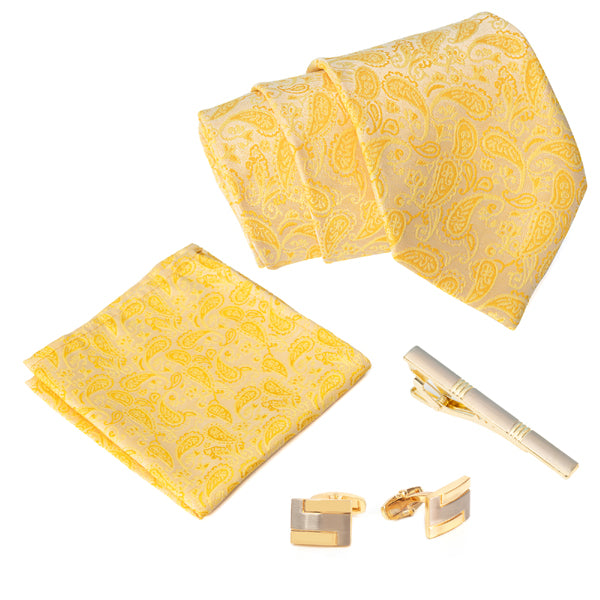This stunning Necktie Set is designed to elevate any gentleman's wardrobe, offering a complete ensemble of a tie, pocket square, cufflinks, and lapel pins.