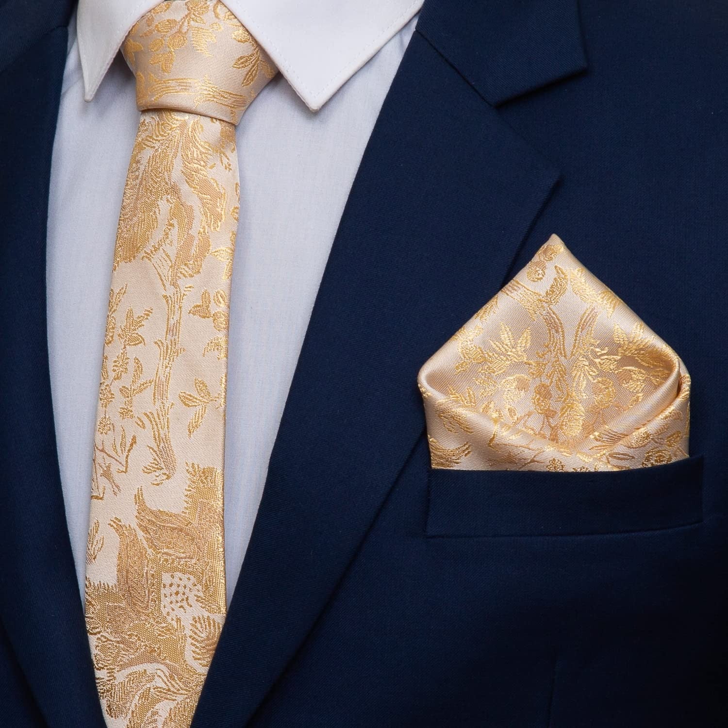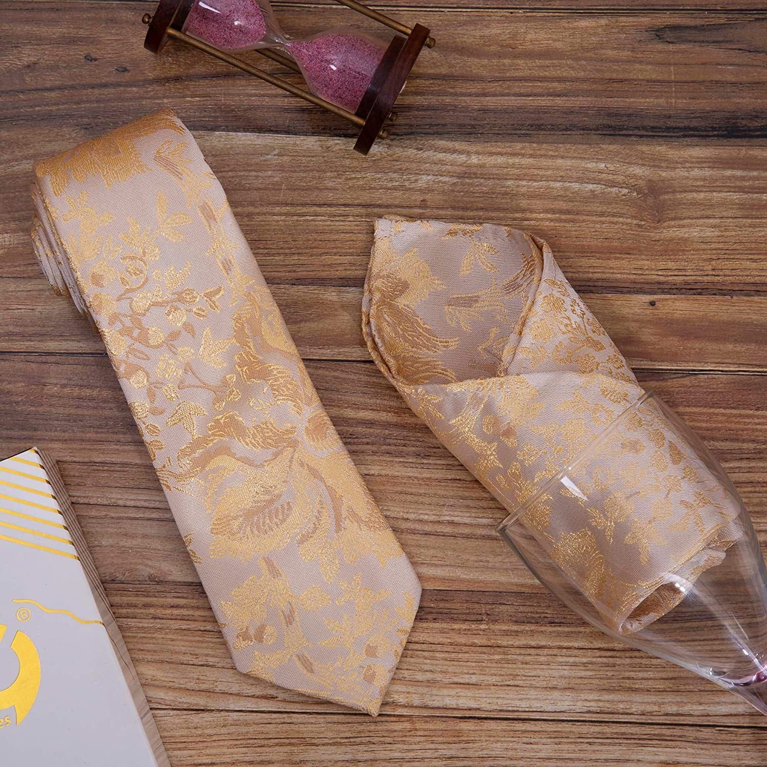 Introducing Elegant Gold Floral Tie Pocket Square Sets, crafted with finest microfiber material.